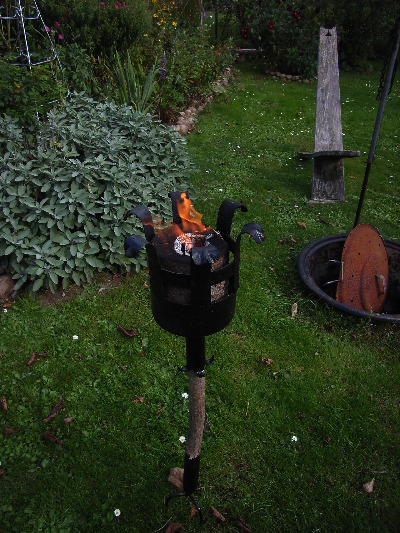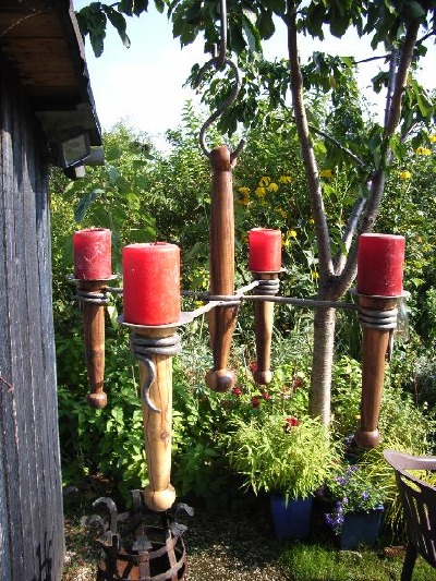 Kerzenleuchter in geschmiedetem eisen und Holz vom Goldregen